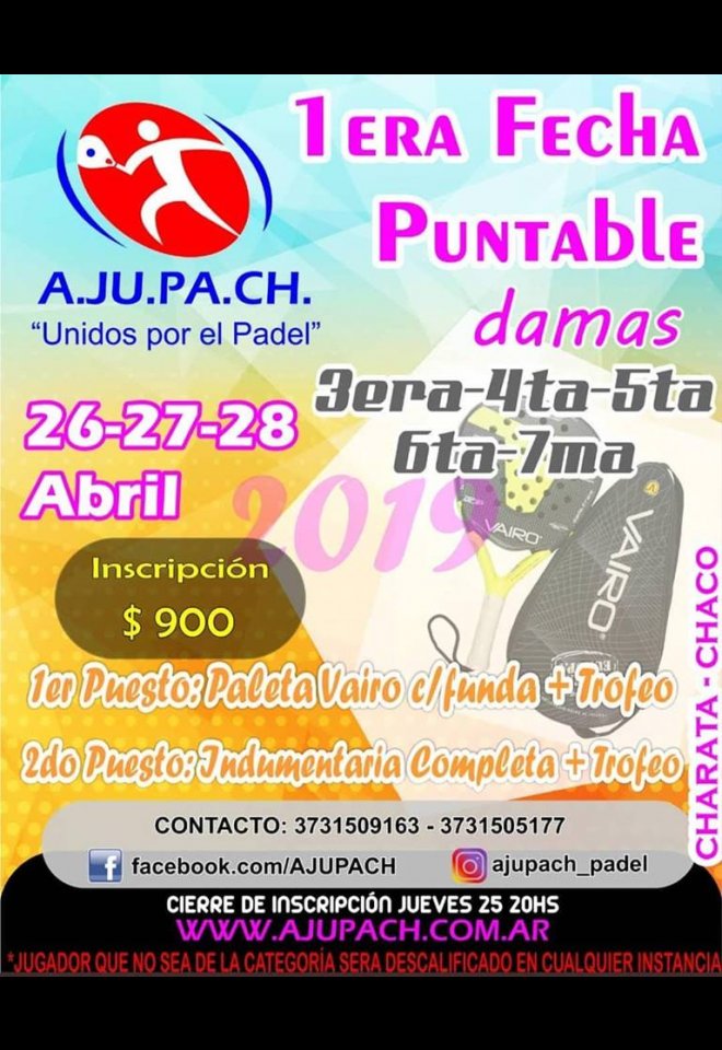 »» Evento: 1RA FECHA DAMAS »» Localidad: Charata »» Fechas: 26/04/2019 al 28/04/2019