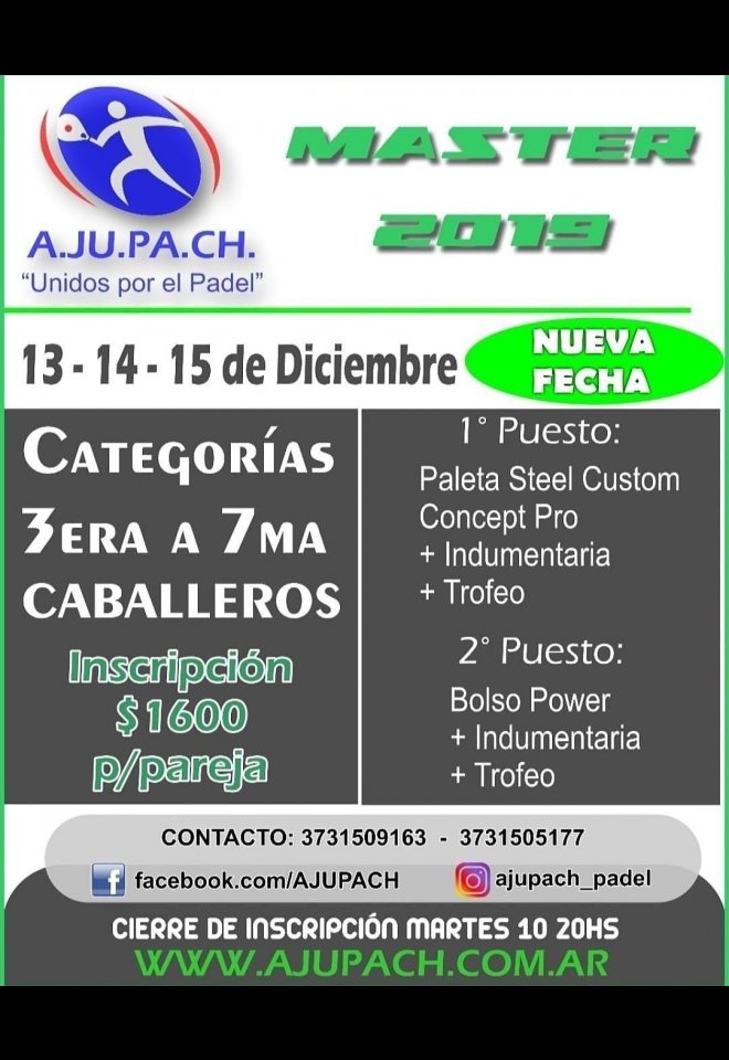 »» Evento: MASTER CABALLEROS 2019 »» Localidad: Charata »» Fechas: 13/12/2019 al 15/12/2019