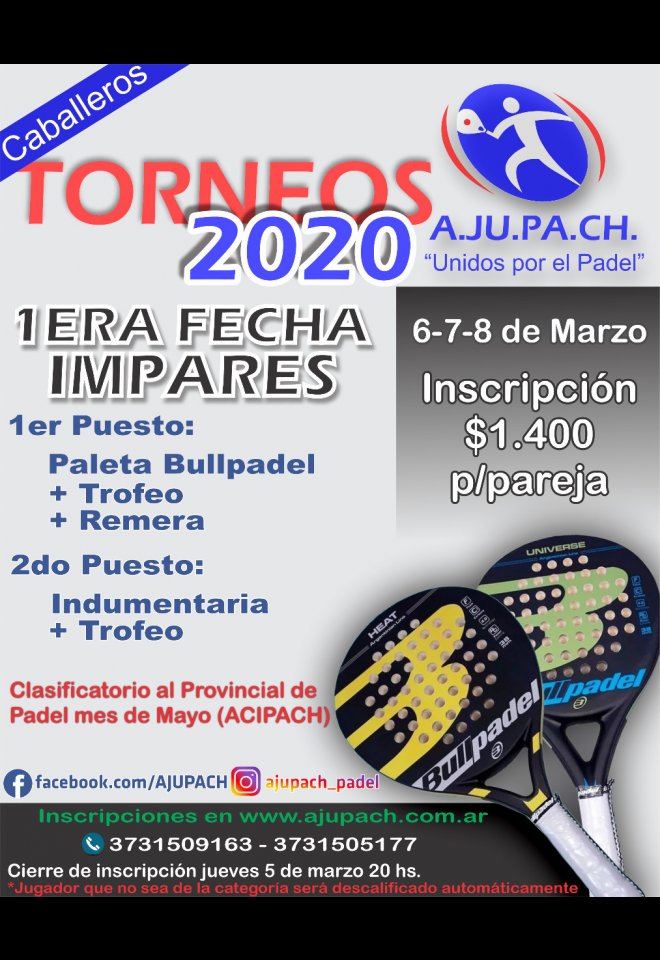 »» Evento: Fecha 1 - IMPARES - AJUPACH »» Localidad: Charata »» Fechas: 06/03/2020 al 08/03/2020