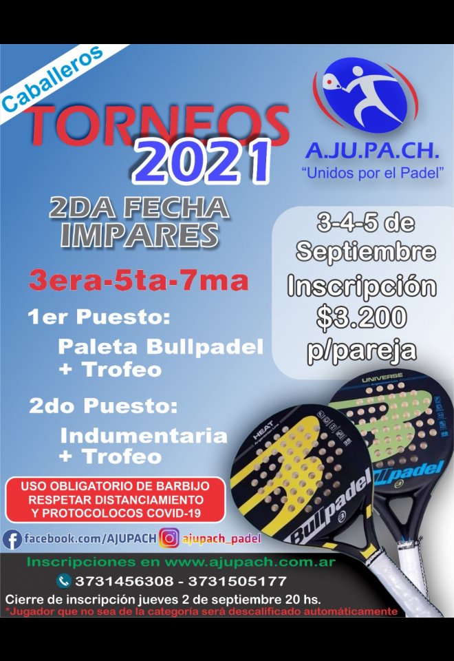 »» Evento: 2DA FECHA IMPARES CABALLEROS »» Localidad: Charata »» Fechas: 03/09/2021 al 05/09/2021